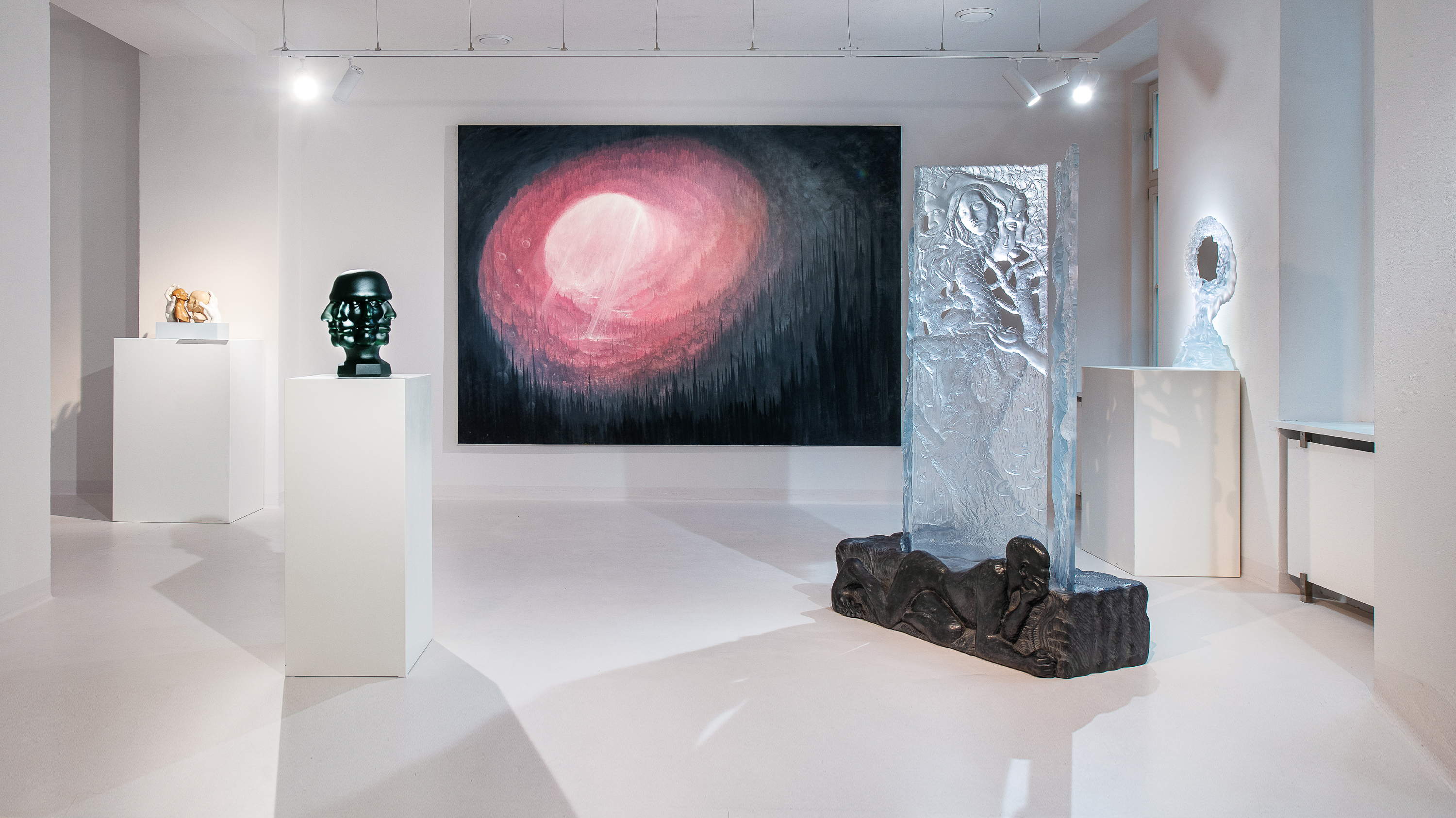 Richard Štipl does not strive for a lifelike illusion of expression. Instead, he explores its paradoxes – situations where faces and gestures act both as manifestation and a mask. In Štipl’s sculptures, expression often shifts away from the face and emerges in the interplay of materials: a smooth wooden face set against a white plaster hand, a head void of content, a couple enclosed in solitude. These apparent contrasts expose the ambivalence of human existence. Expression becomes a web of relations rather than a display of emotion. Where classical sculpture pursued ideals of beauty and psychological pathos, Štipl examines the expression of stillness. His figures seem caught in a state of permanent expectation. Expression transforms from a loud cry into a quiet presence, something materially refined and sublimated. A distinctive dialectic of sculpture reveals itself here – depiction freezes at the moment of completion. Štipl incorporates this concept into his artistic language. Through contrasting materials, a sense of absent vitality emerges. The sculpture ceases to be a mere image of life and becomes instead a testimony to its suspension. Expression shifts from a psychological category to an ontological one, reflected in surface texture and rhythm of form.